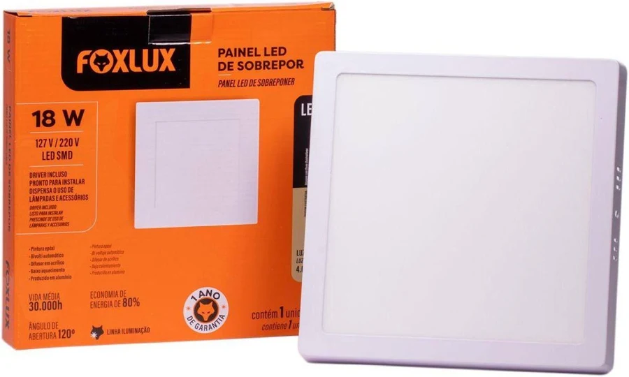O Painel de LED da Foxlux está disponível nos modelos de embutir e de sobrepor. Possui drive incluso e é feito de alumínio, o que ajuda em manter a temperatura baixa para não atrair insetos. É ideal para ambientes internos que exigem iluminação dirigida por longo período de uso.